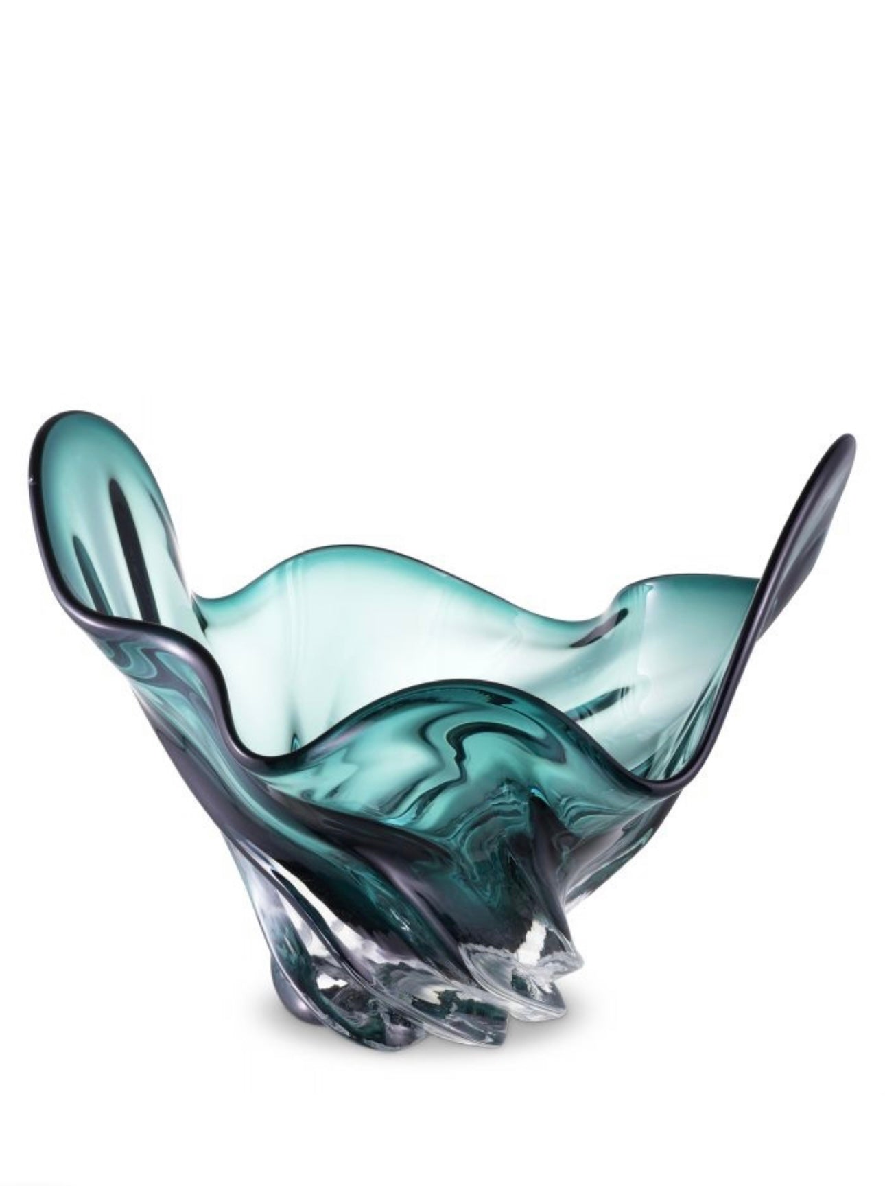 Featuring a vigorous design, this hand blown bowl from green glass will bring a spirited vibe to any décor. Each piece slightly varies in colour, pattern, and size.