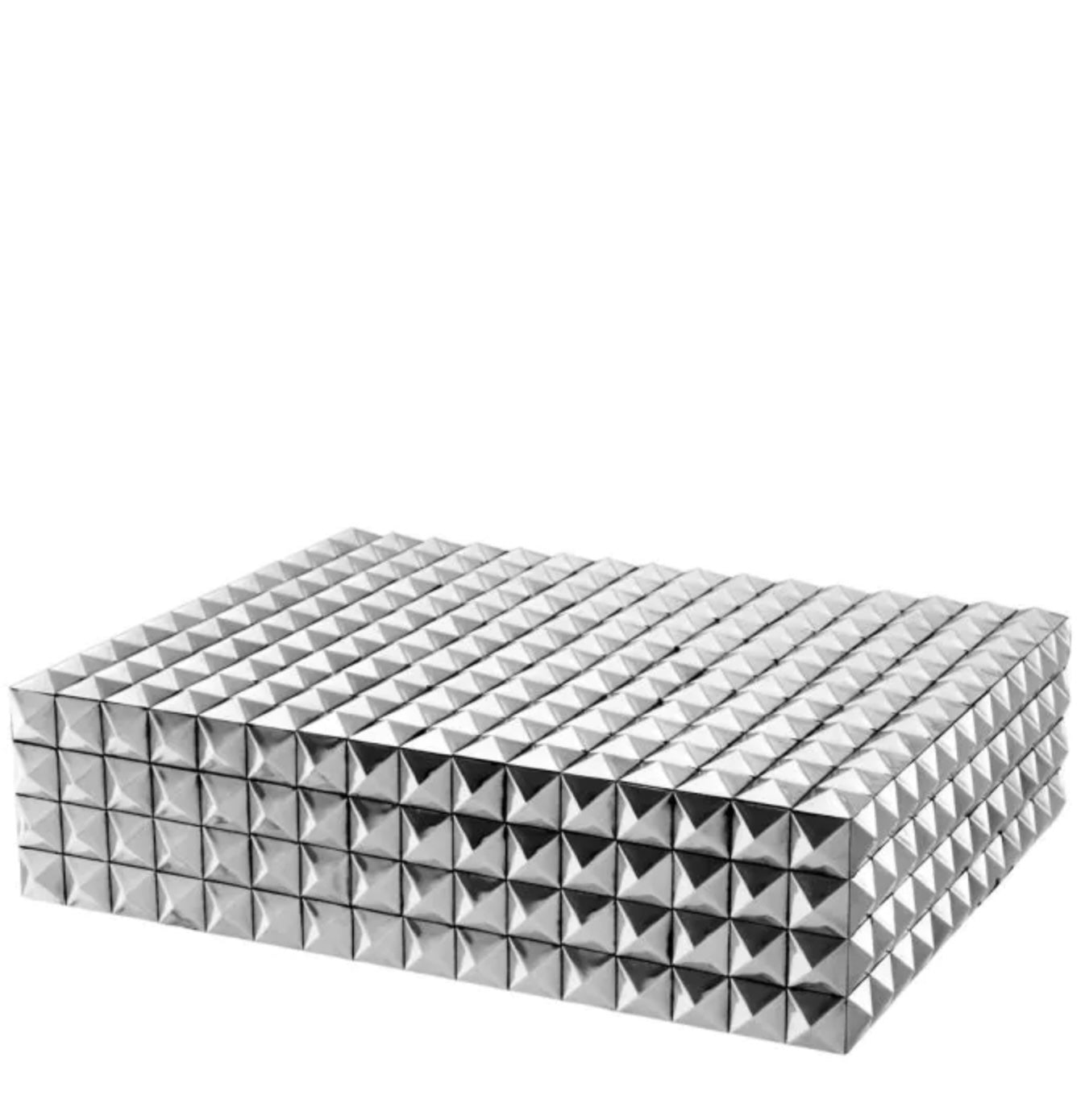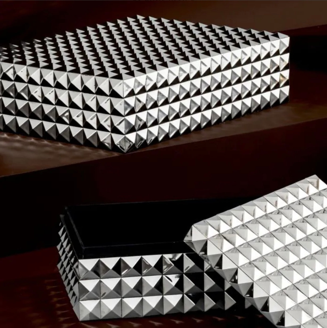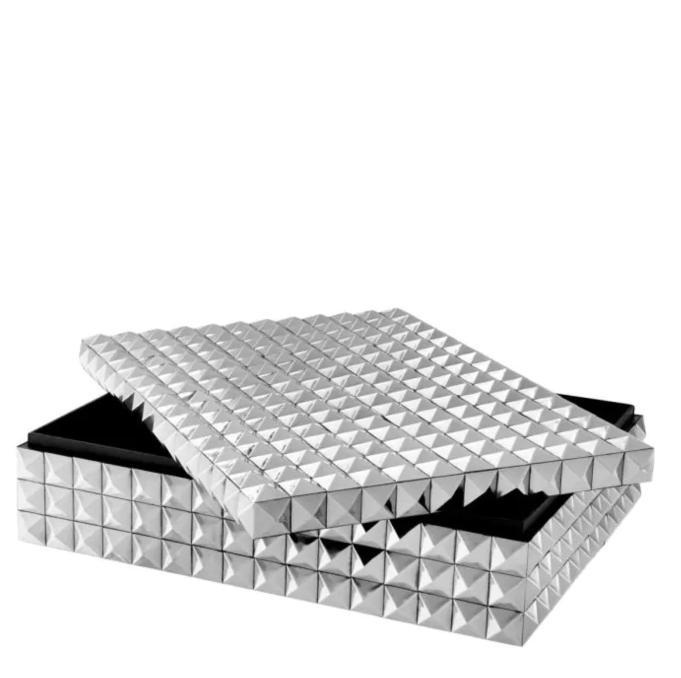 This decorative storage box with nickel finish exudes designer style.Dimensions