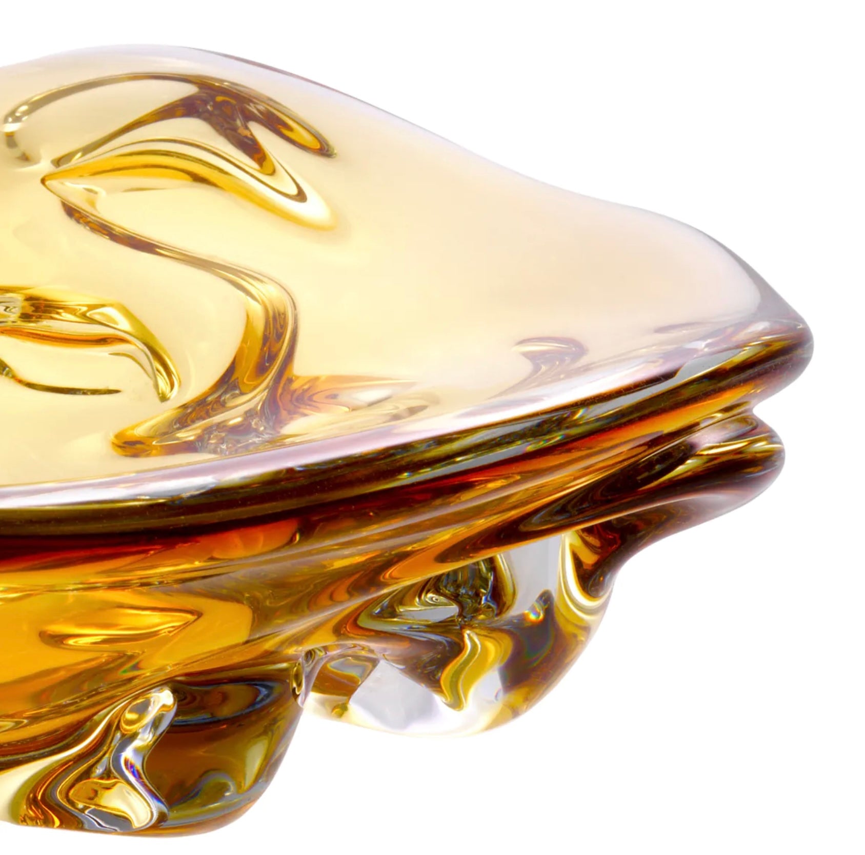Featuring a free-flowing shape and an intriguing exterior texture, the large Kane Bowl is made of pristine, hand-made yellow glass.