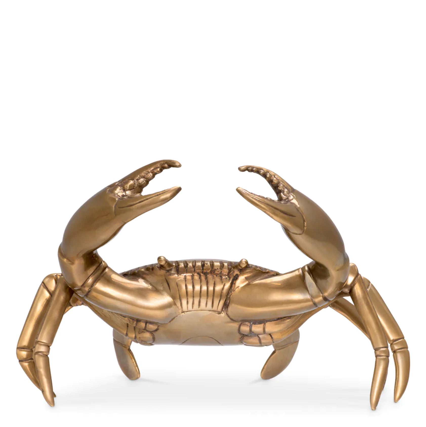 Handcrafted from solid casted brass with a vintage brass finish, this intricate crab sculpture exemplifies luxury and artisan craftsmanship, making it an exclusive addition.Dimensions