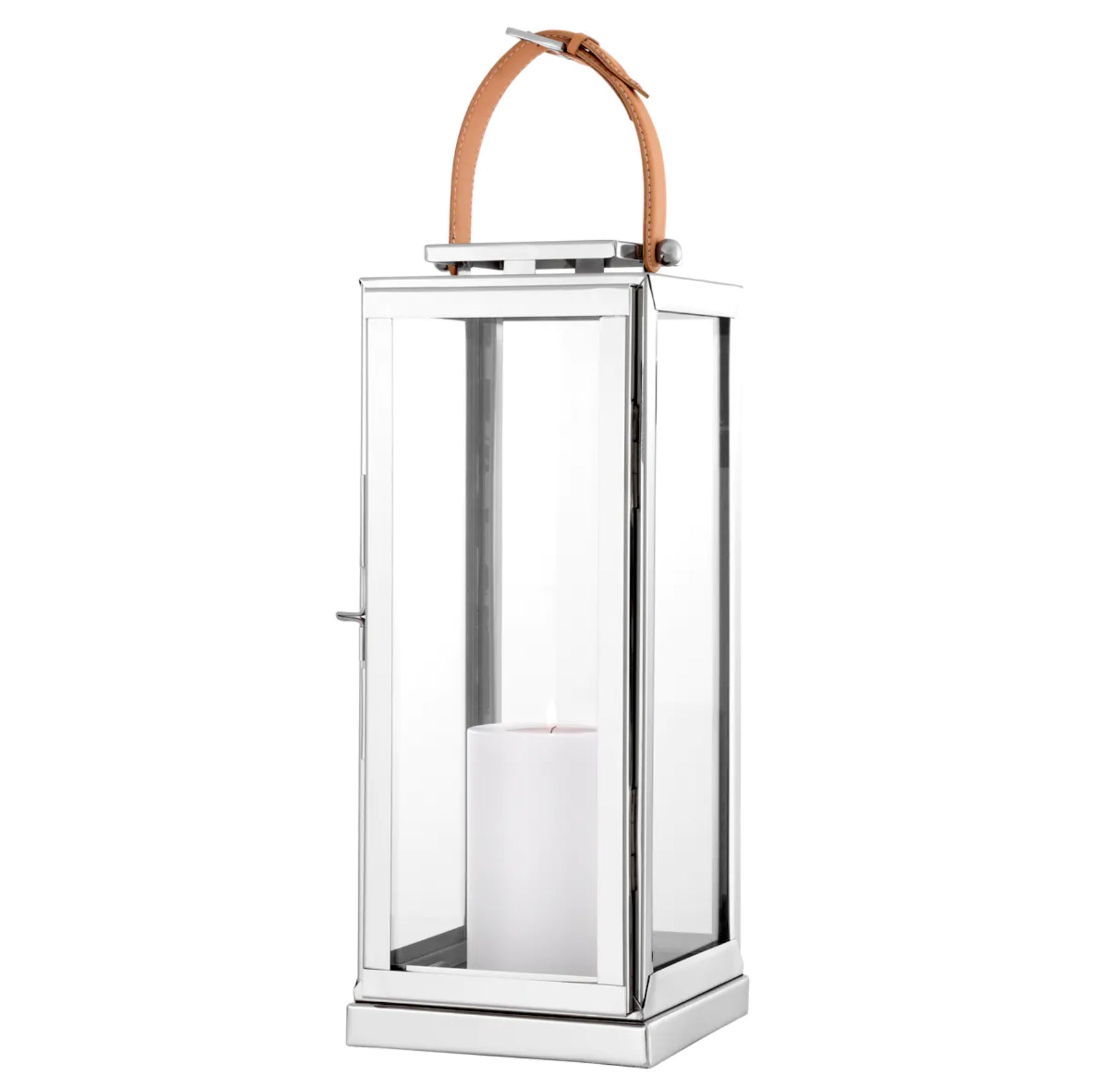 This lovely nickel finished lantern will provide a soft and gentle light in your living space. Its solid and decorative design with four glass panels encases candles to burn safely (candles not included).Dimensions