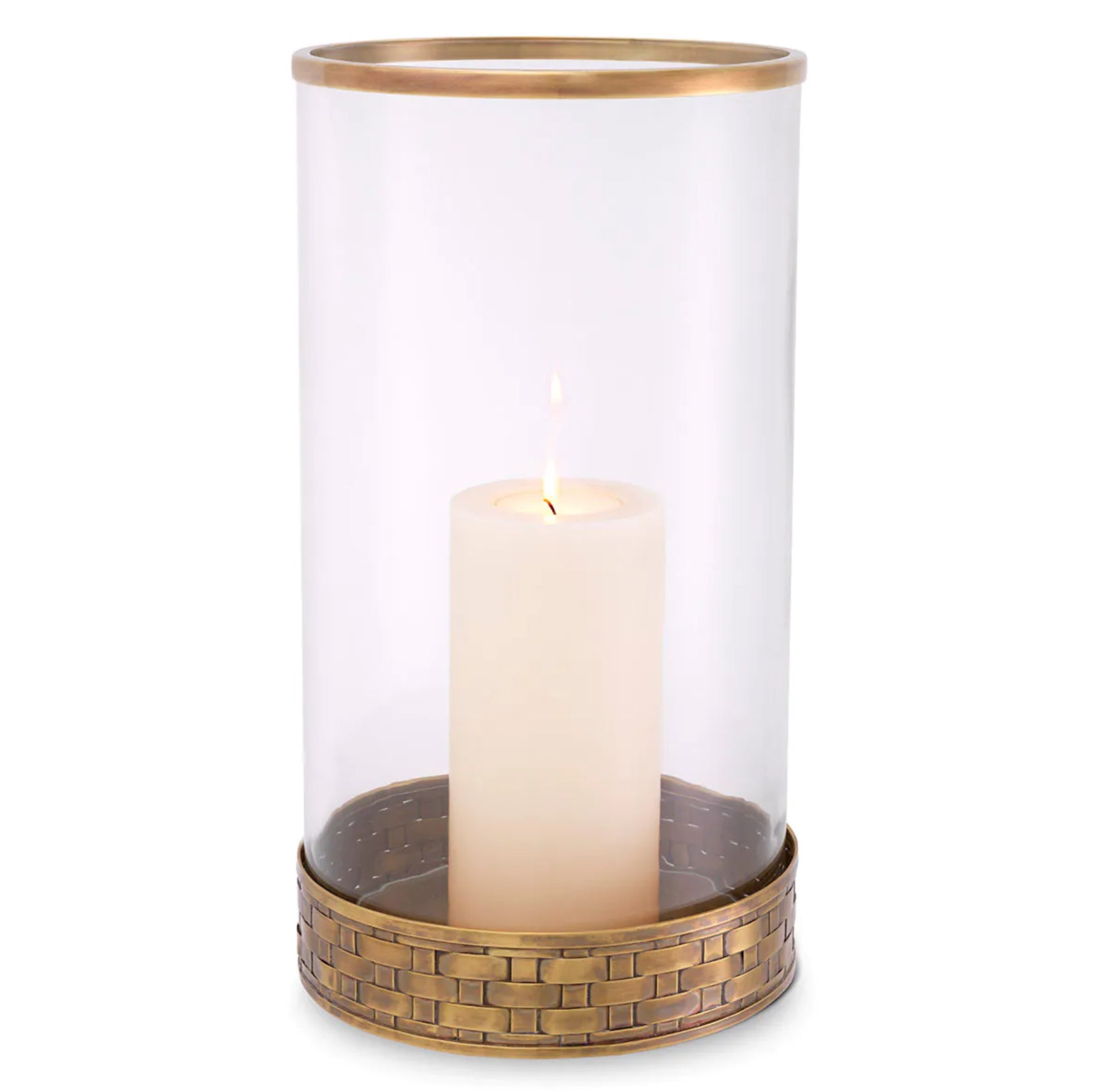 Made with a sturdy vintage brass base that features a braided relief pattern, it is perfect for creating an elegant atmosphere at your tabletop or mantel. Display on your console, coffee table, or dining table.Dimensions