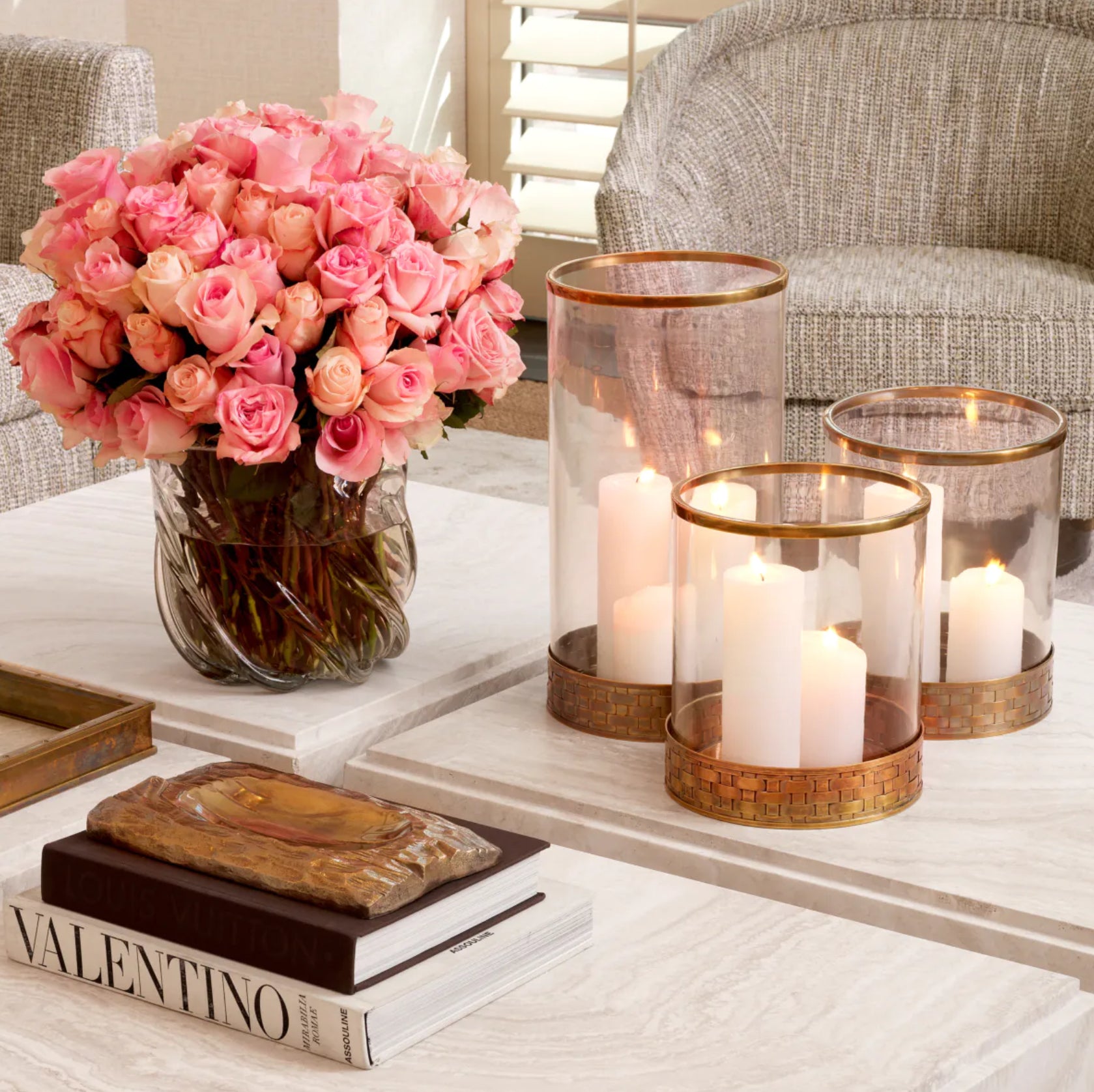Make any occasion extra special by adding a real or faux pillar candle to the large Lausanne Hurricane.