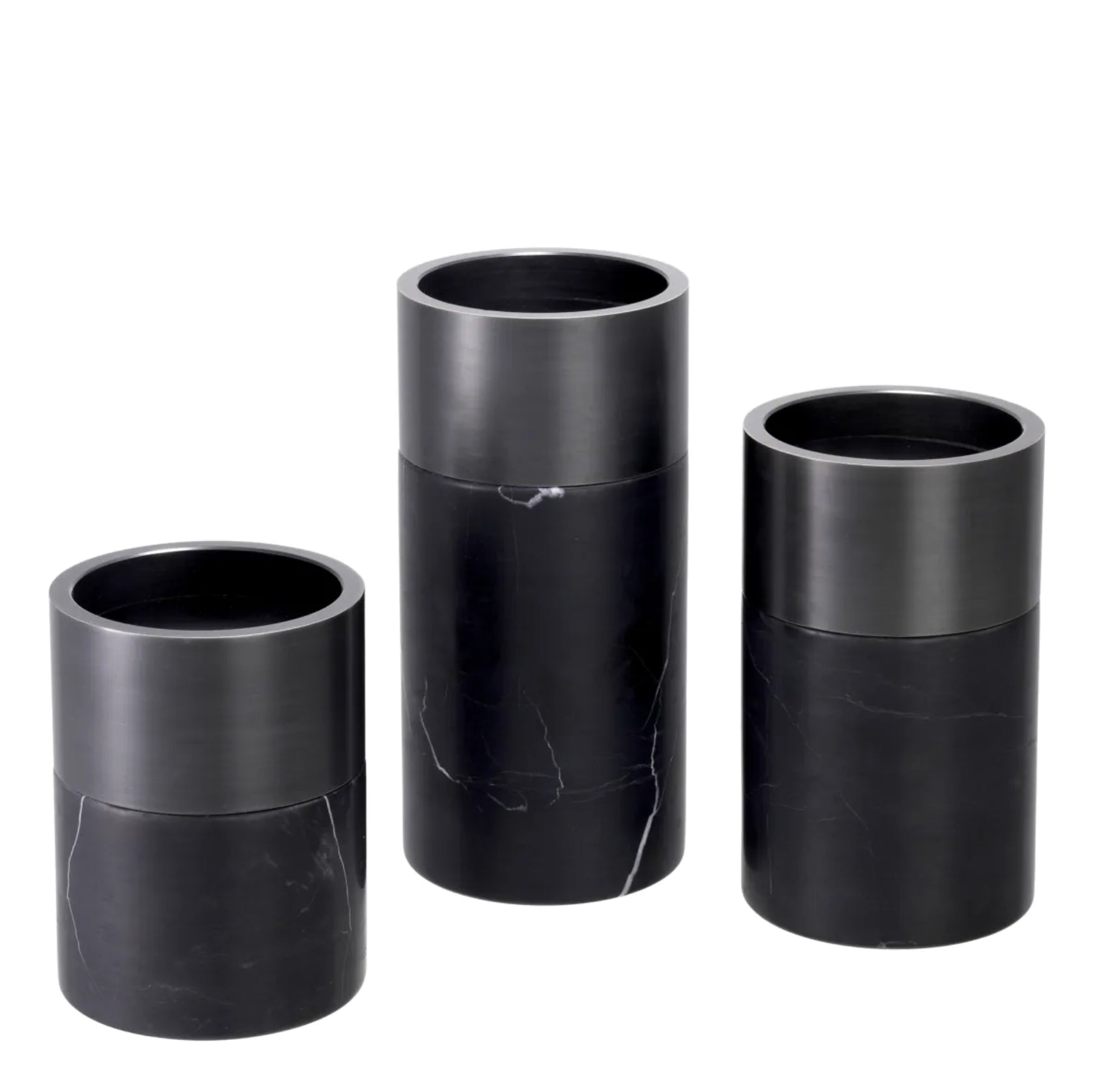 Crafted from black marble and provided with a rim in a bronze finish, they work well with a variety of interior styles such as contemporary, Mid-Century Modern, minimalist and urban. Combine with our artificial candles.Dimensions